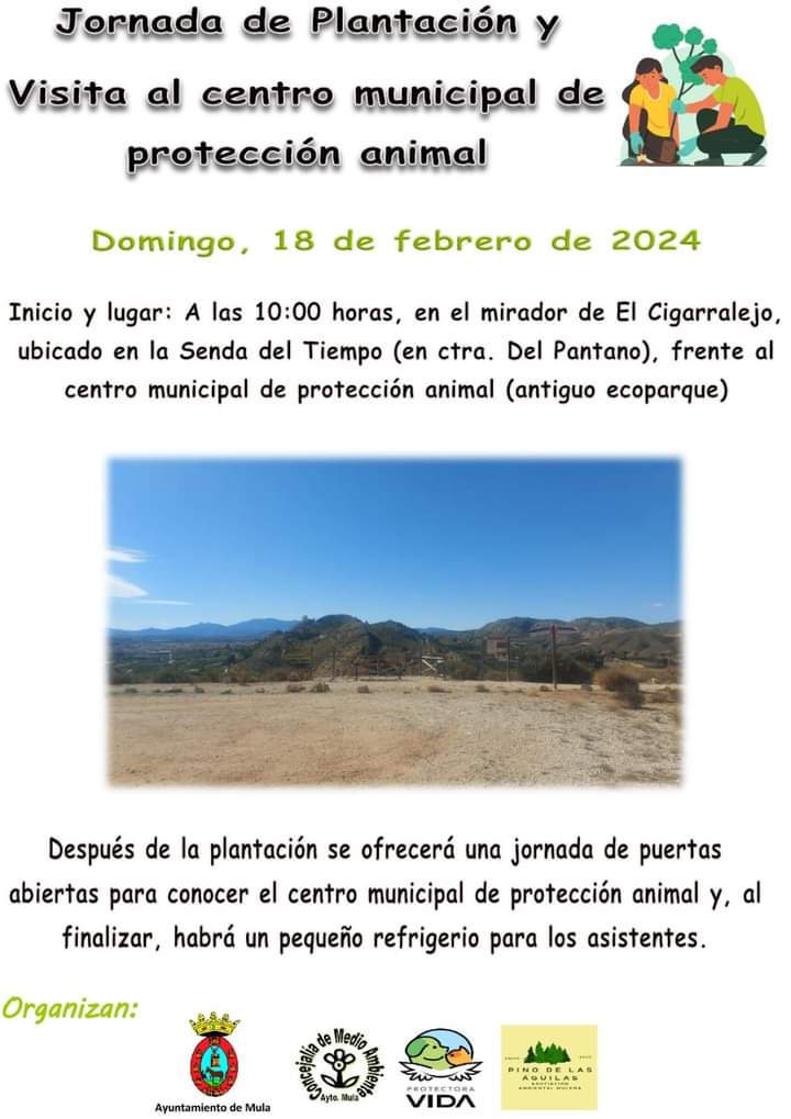 Jornada de plantación y visita al centro municipal de protección animal. Domingo, 18 de febrero. Mirador de El Cigarralejo (ctra. Del Pantano) - 10 h. Habrá un pequeño refrigerio para los asistentes.