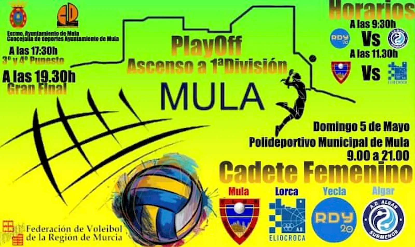 Ya esta todo preparado… ya esta aquí, Los PlayOff Cadete Femenino llegan a Mula. El Domingo 5 de Mayo…