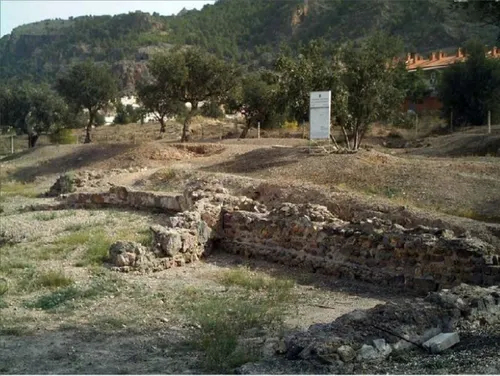 La basílica paleocristiana de Algezares, ubicada en el paraje del Llano del Olivar, es uno de los principales testimonios del cristianismo rural en la Antigüedad Tardía, con una cronología situada entre los siglos VI y VII. El conjunto presenta una planta alargada con ábside semicircular y diversas estancias anexas, entre las que sobresale un baptisterio independiente de planta octogonal con pila de inmersión, elemento que evidencia la existencia de una comunidad cristiana organizada y un centro litúrgico plenamente funcional.