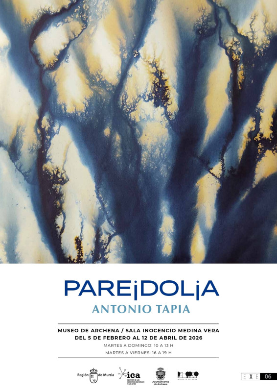 También el jueves, el Ayuntamiento de Archena inaugura ‘Pareidolia’, de Antonio Tapia, en la Sala Inocencio Medina Vera del museo de la localidad. La exposición propone un recorrido por la capacidad humana de reconocer formas y figuras en lo desconocido y se podrá visitar hasta el 12 de abril, en las mañanas de martes a domingo, en horario de 10:00 a 13:00 horas, y en las tardes de martes a viernes, de 16:00 a 19:00 horas.