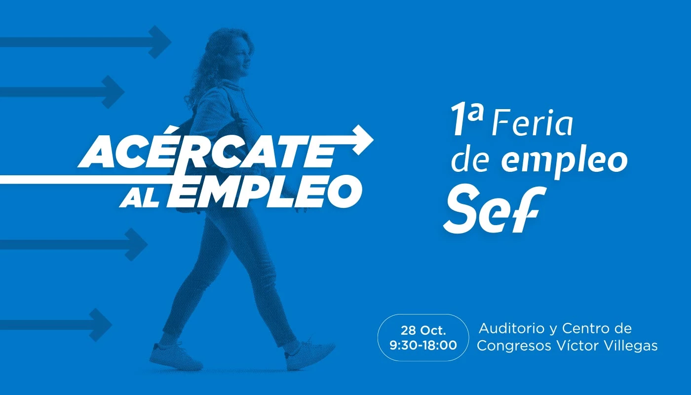 El Servicio Regional de Empleo y Formación (SEF), dependiente de la Consejería de Empresa, Empleo, Universidades y Portavocía, celebrará el próximo viernes, 28 de octubre, en el Auditorio y Centro de Congresos Víctor Villegas de Murcia su primera Feria de Empleo, ‘Acércate al empleo’, con el objetivo de conectar a personas en desempleo con empresas que buscan trabajadores.