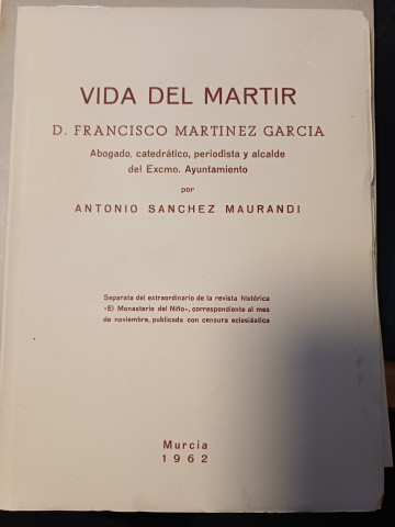 SEGUNDA MANO - VIDA DEL MARTIR D.FRANCISCO MARTINEZ GARCIA